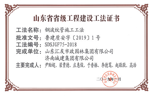 集团“钢波纹管施工工法”被评为山东省省级工程建设工法