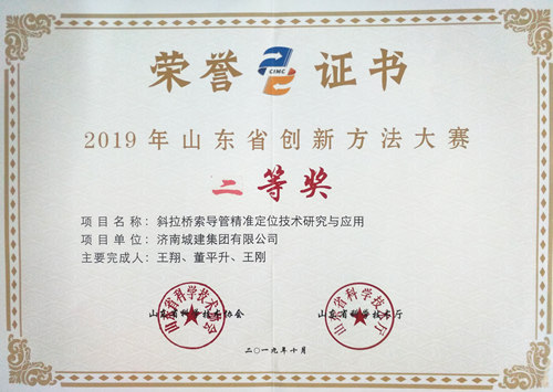 集团《斜拉桥索导管精准定位技术研究与应用》荣获“2019年度山东省创新方法大赛二等奖”