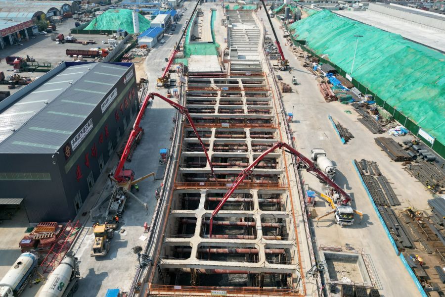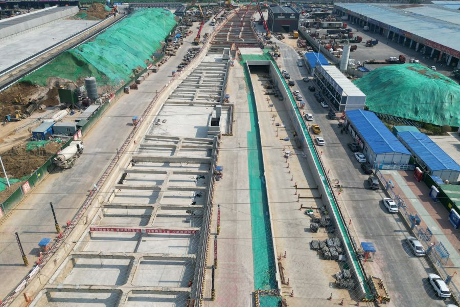 济南市黄岗路穿黄隧道工程位于天桥区药山街道和起步区大桥街道,工程南起二环北路以南,北至G309互通立交,集团承建南岸约730米明挖段施工,包含东线隧道、西线隧道、匝道段及改造的电力管廊等。明挖段基坑最大深度为23.5米,基坑宽度为9.7~29.5米。