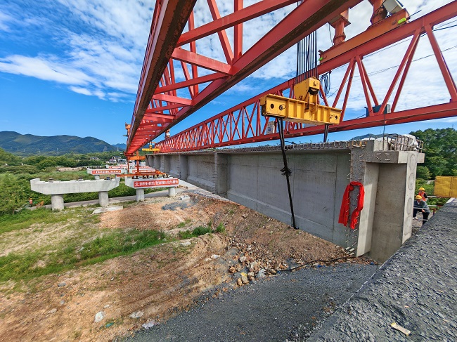 集团宁国市S104港口至高铁站段一级公路建设工程顺利完成首片预制T梁吊装