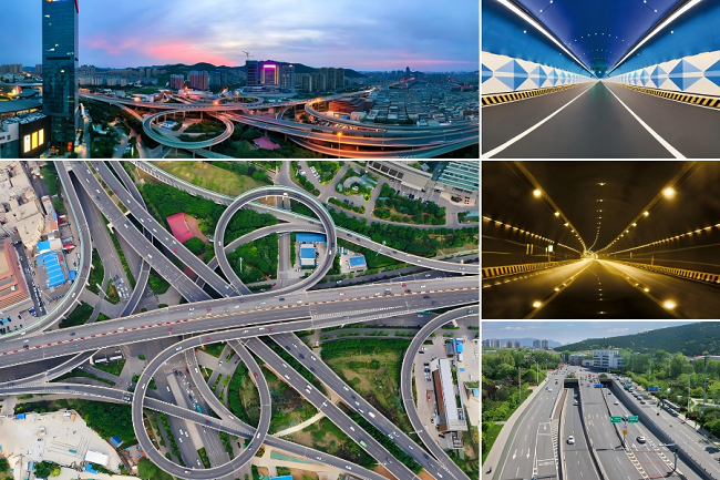济南市顺河快速路南延建设工程位于泉城特色风貌轴上,全长13公里,其中隧道5.7公里,总造价50亿元。该工程因面临隧道围岩软弱破碎、埋深浅、紧邻建筑物、突水涌泥、地表塌陷以及地下管线密集复杂等多重挑战,创下了国内城市浅埋暗挖隧道建设难度的新纪录。集团凭借深厚的技术实力和不懈的创新精神,成功研发了城市复杂环境下浅埋超小净距隧道修建技术、涂覆抗车辙彩色防滑路面施工新技术,建立了准静力影响线法桥梁结构安全快速诊断与评定体系。4项创新成果列入省部级科技计划项目,5项技术达国际先进水平,2项技术达国际领先水平。