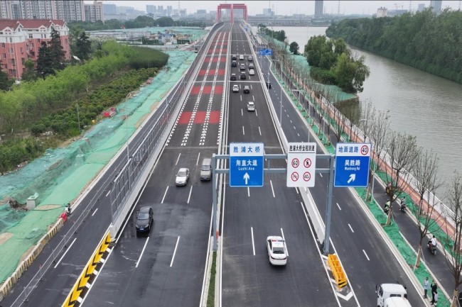 该工程于2023年11月正式启动建设,北起新胜路交叉口北侧,向南以跨线桥衔接现状胜浦大桥主桥,工程全长约1公里,高架主线段长605米,桥宽25.5米,采用双向六车道设计,并配备四条匝道,设计车速达60千米/小时。胜浦大桥是连接工业园区和吴中区的重要通道,将有效提升区域交通通行能力。