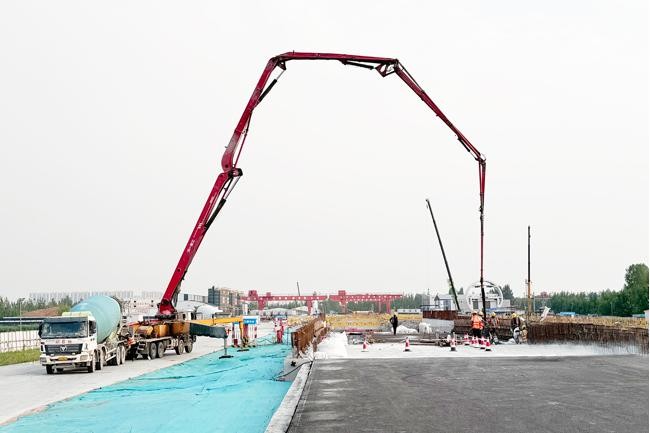 质量管控方面,项目部实行全过程精细化管理。钢筋工程严格执行图纸要求,对型号、间距、搭接等关键参数逐一验收;混凝土浇筑采用串筒工艺保障浇筑质量,技术人员全程旁站监督,定时检测坍落度指标。振捣作业遵循标准化流程,对关键部位加强振捣力度。混凝土初凝前实施二次抹压工艺,有效提升结构自防水能力。经过70个昼夜的连续施工,项目部高质量完成全部23节底板的封底任务。