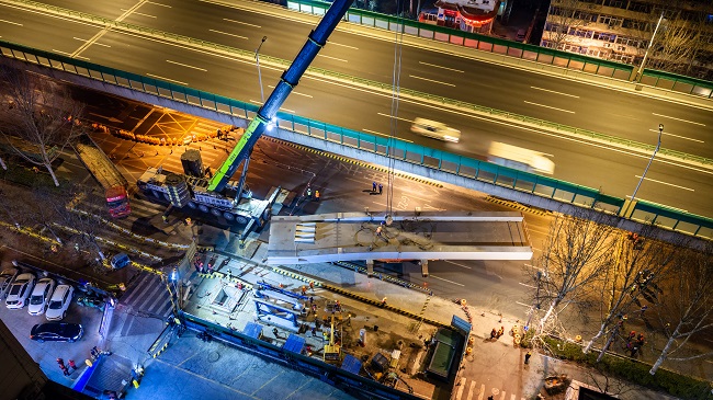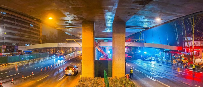 精筑便民桥 天桥展新姿——集团二环东路百花公园人行天桥主桥吊装圆满完成