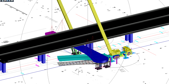 针对现场难点,项目部创新工作方法,提前划定存梁场地完成钢箱梁拼装焊接,有效缓解交通导改压力。技术人员提前进行运梁车进出场、钢梁吊装模拟,依托CAD设计图纸,采用GPS-RTK高精度定位技术,对吊车支腿站位、运梁车停放区域进行精准放样并做标准化喷漆标识;同步测设钢结构吊点三维坐标,利用3D模拟结合钢丝绳理论受力角度,用激光笔进行空间投射校核,实现吊装姿态可视化预演,从源头消除图纸数据与现场工况的偏差,确保各工序精准受控。