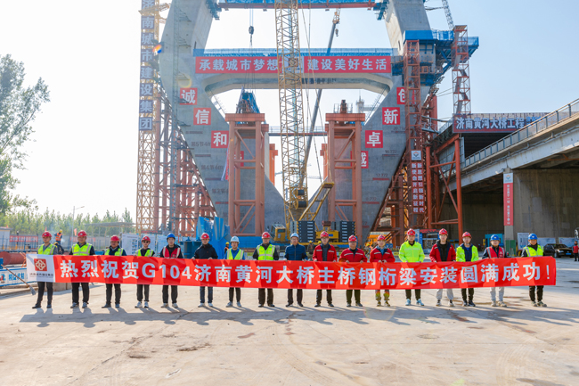 济南黄河公路大桥改扩建工程钢桁梁安装成功